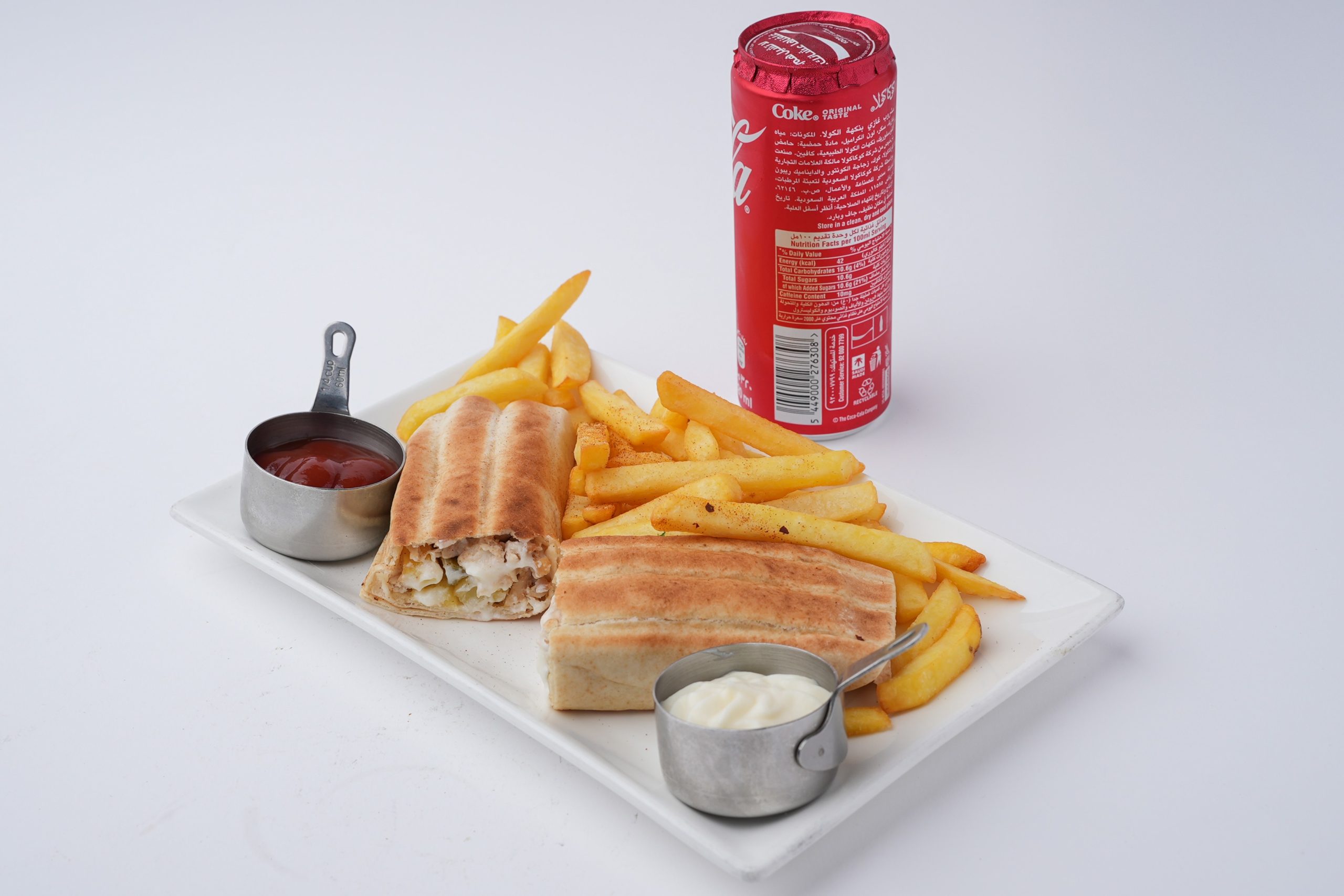 جميع وجبات المشاوي تقدم مع بطاطس (174kcal)، سلطة خضراء، مخلل (3kcal)، واختيارك من طحينة / طحينة حراق (147kcal) او ثوم / ثوم حراق (183kcal)