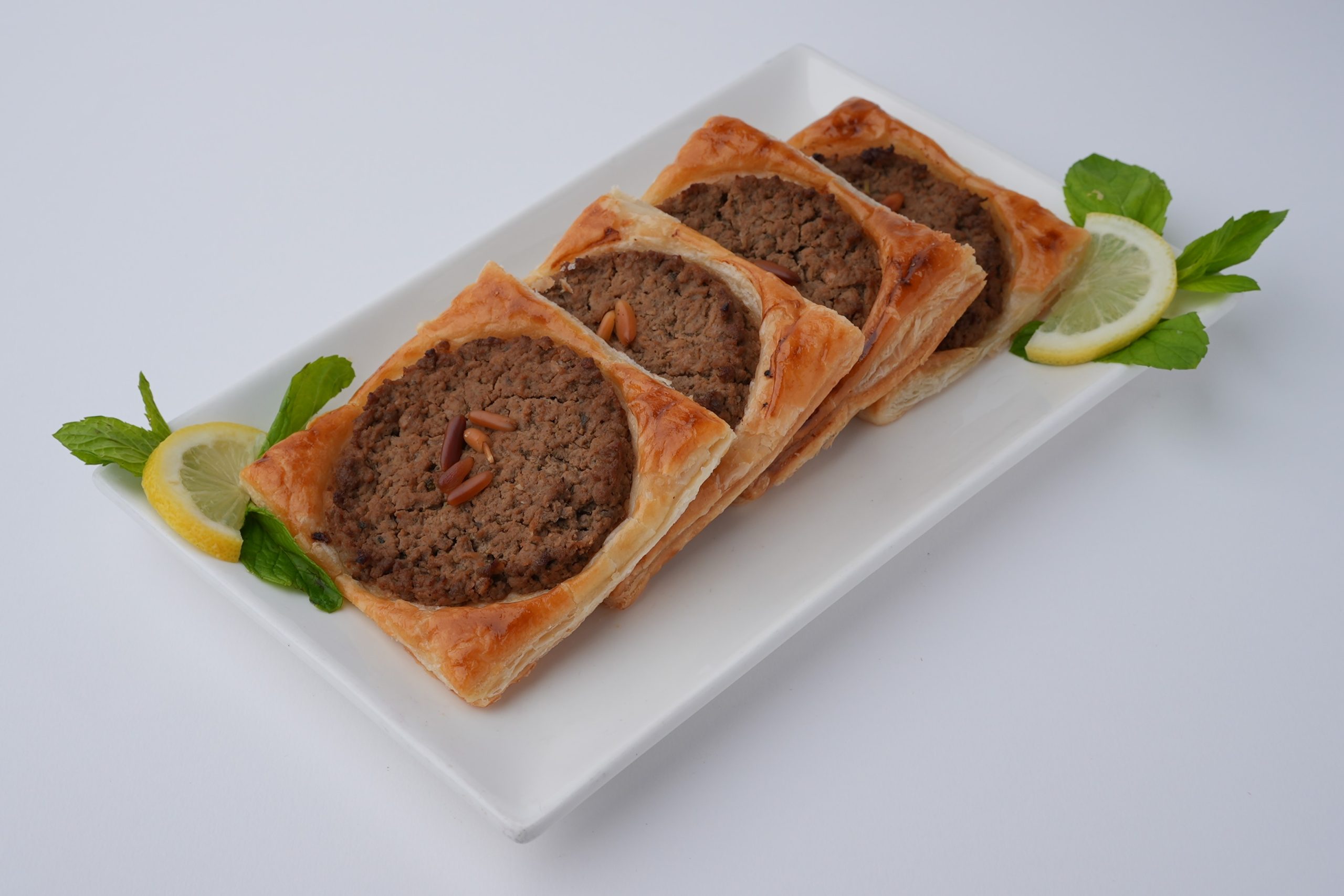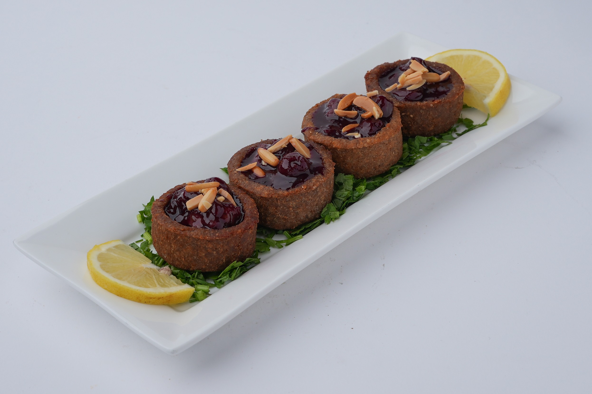 أربعة قطع من الكبة بصوص الكرز وكرات اللحم المشوي